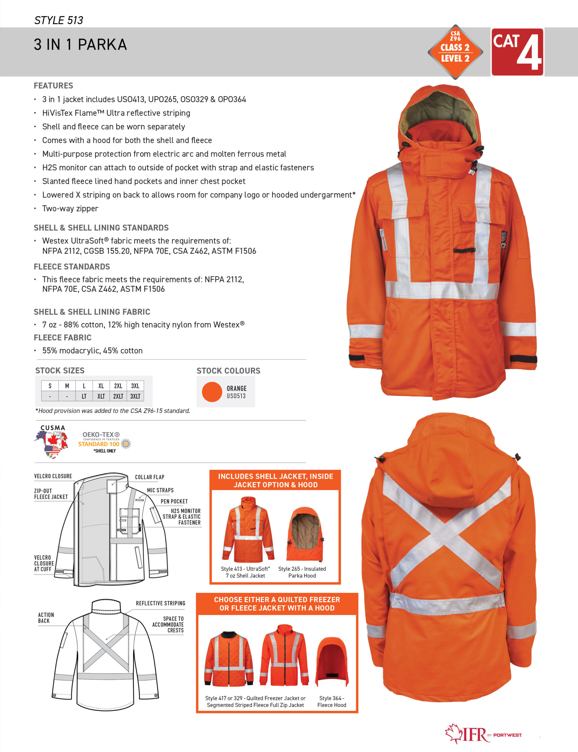 IFR Workwear 3 in 1 Parka - Hi-Vis Orange, Size S