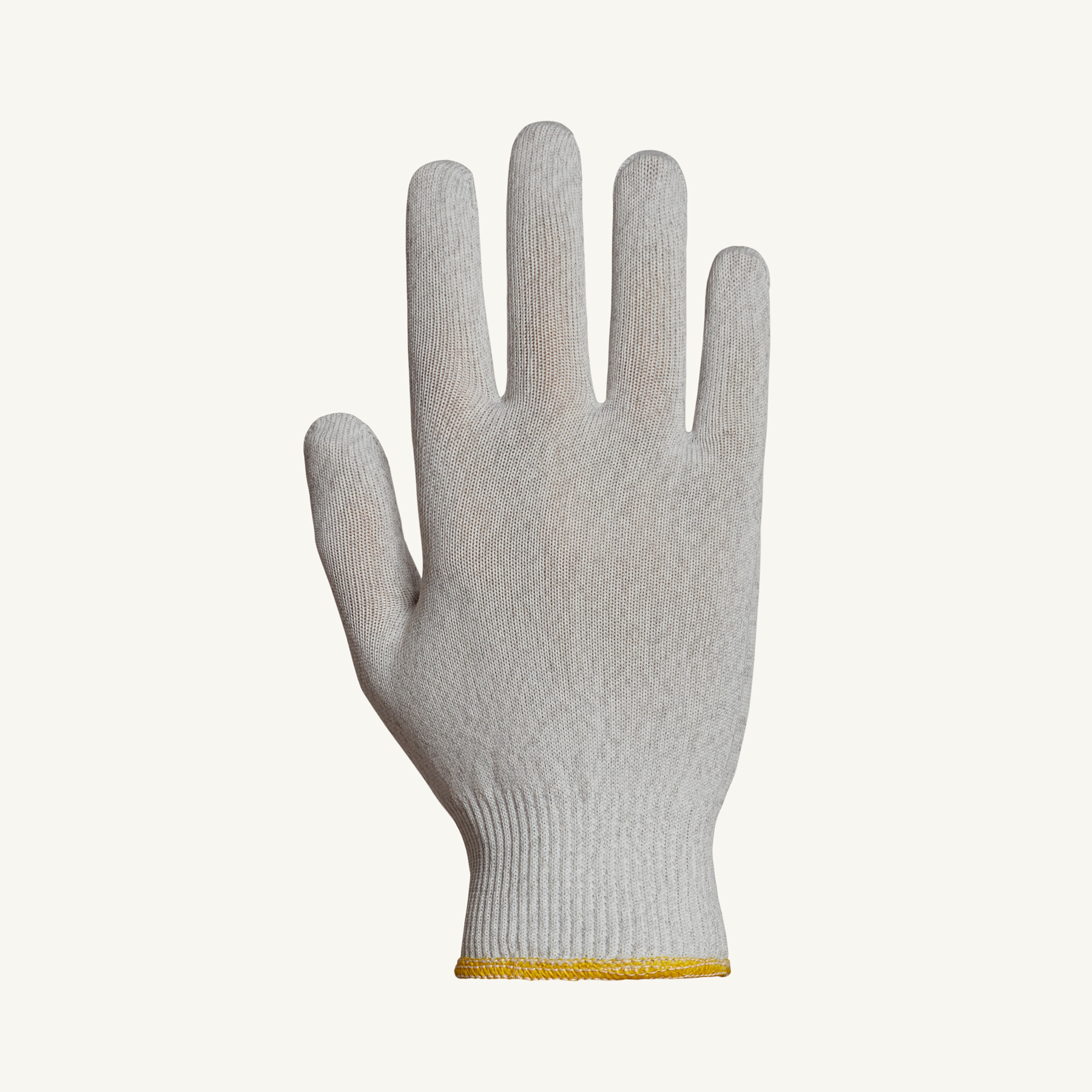 Sure Knit® Anti-Static Flame Resistant String Knit Gloves, Green, Seamless Style, 13 ga Rhovyl®/ESD Carbon Filament
