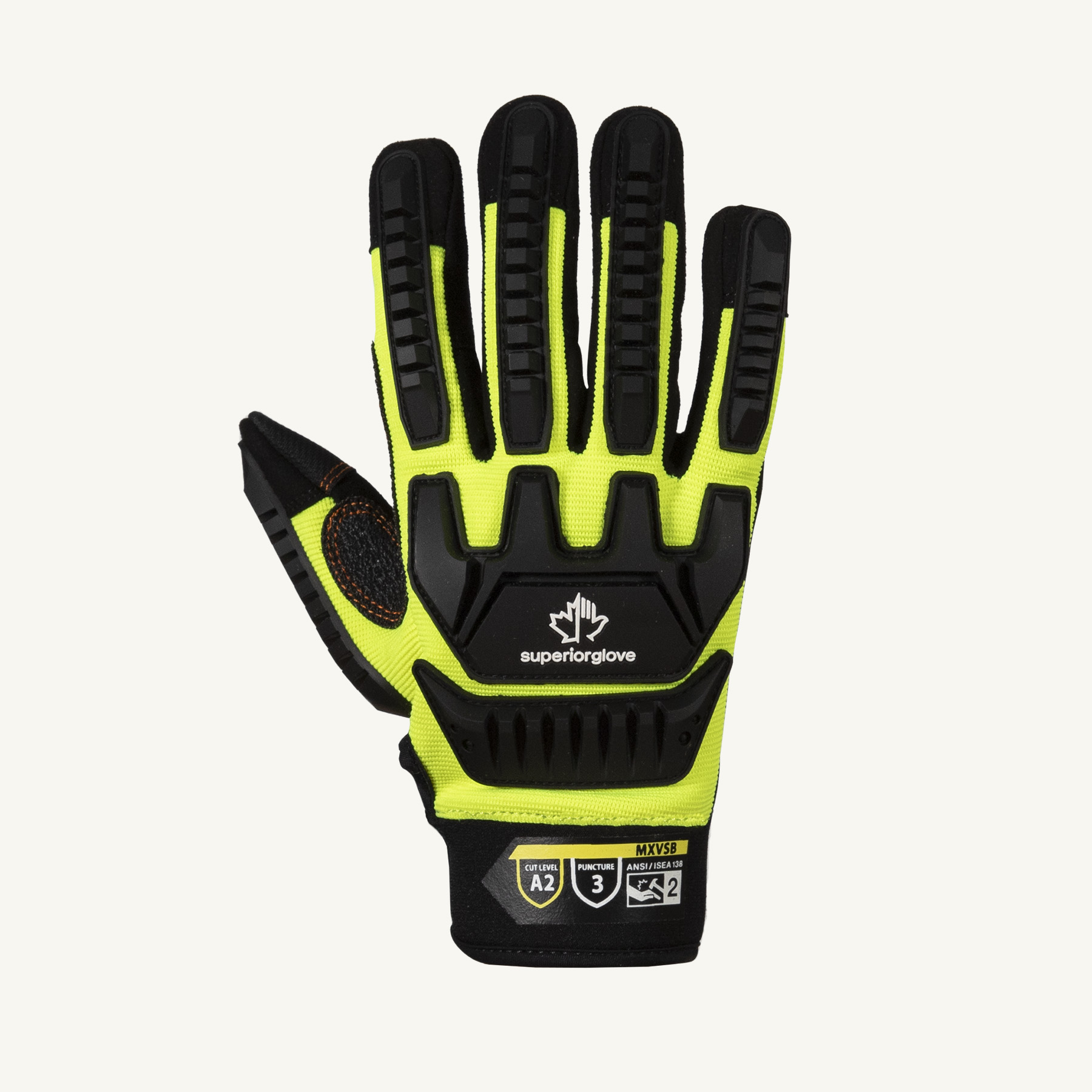 - Our hi-viz Clutch Gear® MXVSB gloves offer back of hand ANSI 2 impact resistance that won’t sacrifice dexterity. Strategically placed patches on the palm and fingertips provide better grip and durability. Reinforced thumb crotches increase wear resistance in critical areas. The adjustable hook and loop wrist closure to provide a snug and comfortable fit while adding an extra layer of protection.