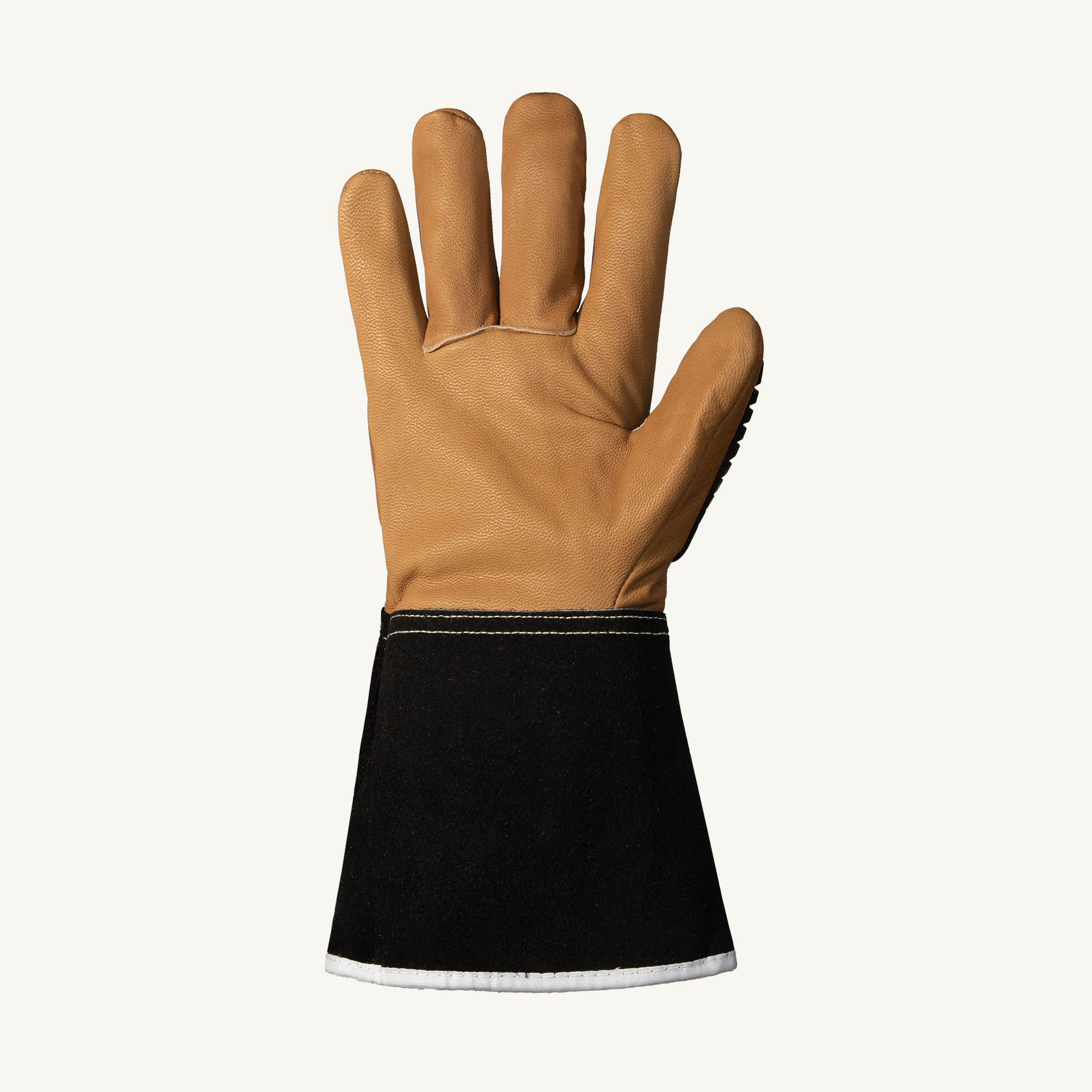 - Brand: Superior Glove™ANSI Cut-Resistance Level: 5Color: TanCuff Style: GauntletLining: Kevlar®Material: Goatskin Leather /TPRPalm Material: Goatskin LeatherResists: Oil, Puncture and WaterSeries: 375KGVB, Endura®Size: SStyle: Seamless
