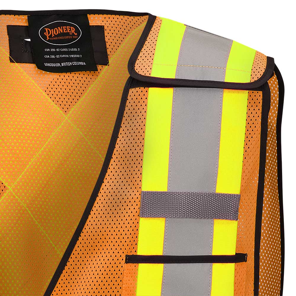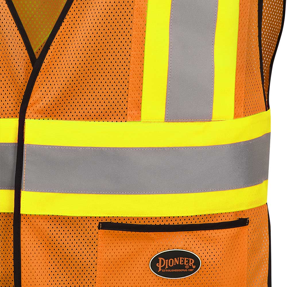 SureWerx® PIONEER® Hi-Vis Poly Mesh Safety Vest - 5-pt Tear-Away, Hi-Vis Orange, O/S
