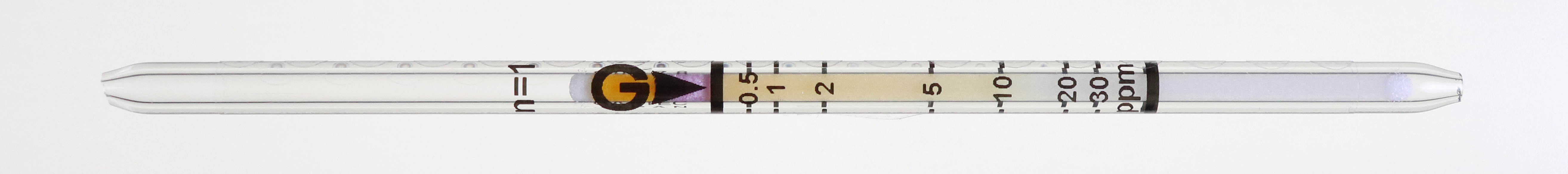 - Gastec Pyrotubes for nitro carbons, with clear color change that corresponds to concentration of gas.